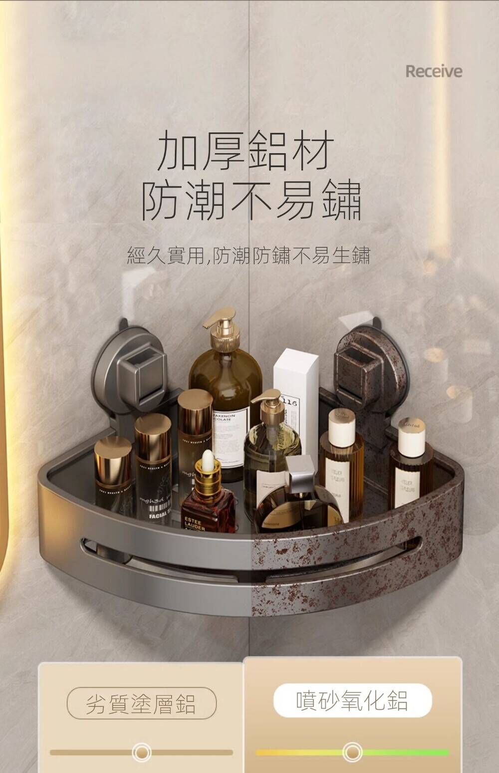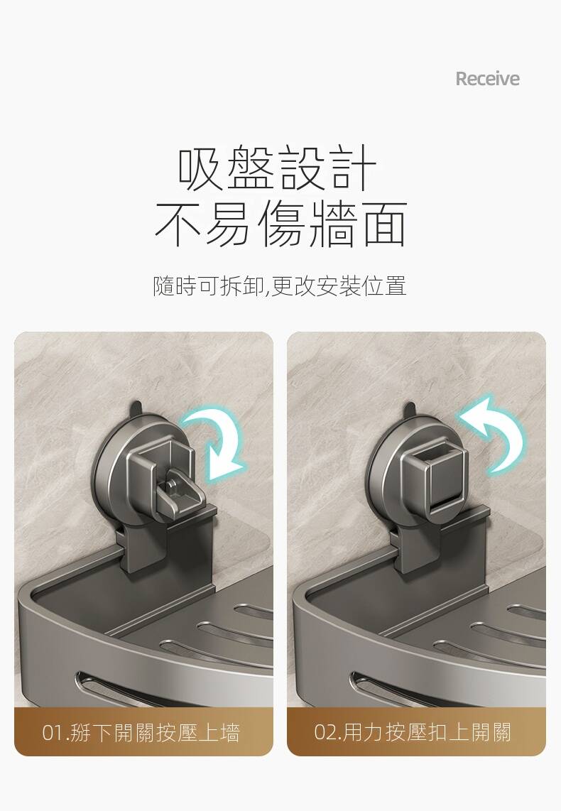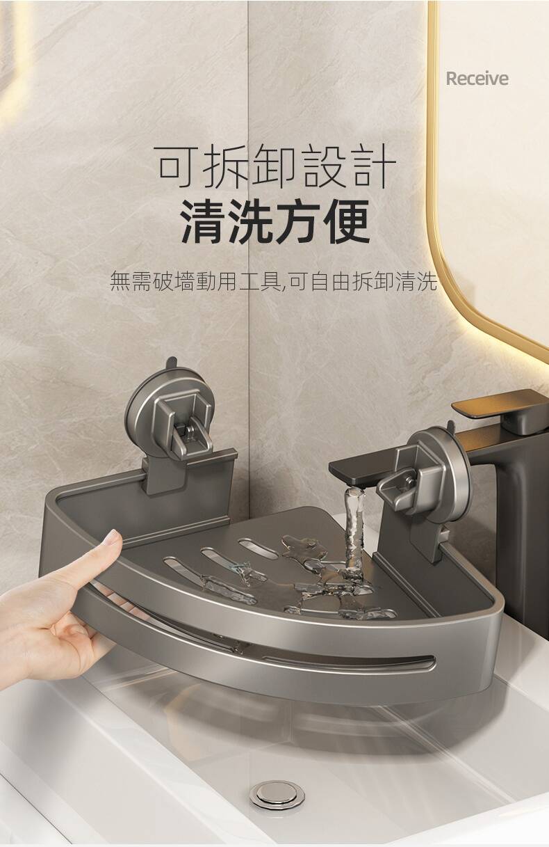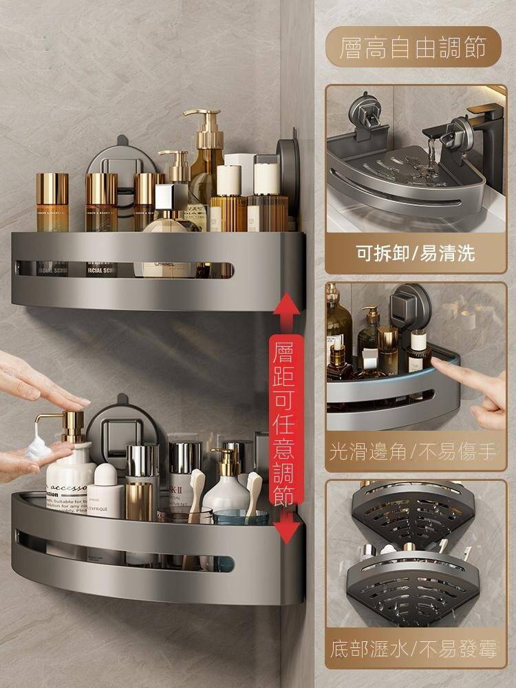 20分鐘前自帶吸盤,可隨時移動重復使用的置物架 免打孔廚房浴室衛生間三角置物架多用途壁掛收納架毛巾架 - 【超夯下殺】買一送二,共三入組 NT$998